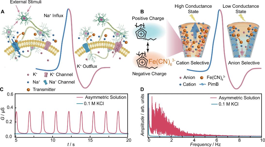 利用流体体系中的阴阳离子模拟神经系统的信息存储和处理功能,对于构筑高效类脑计算芯片、发展智能化脑机交互接口具有重要意义。然而,如何在实验层面构筑结构和功能都高度类脑的流体系统,长期以来面临着离子输运行为调控困难、神经形态功能高度非线性等一系列基础科学问题的挑战。