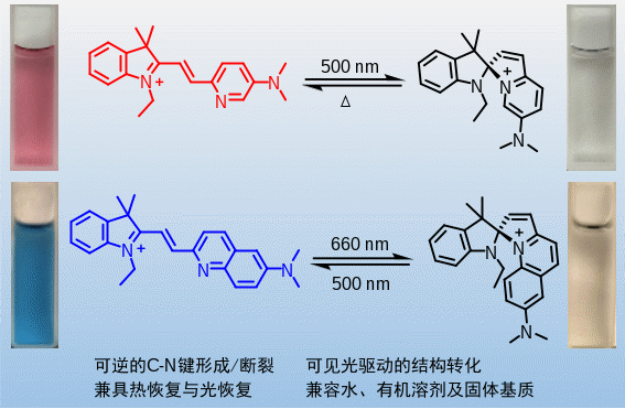 吡啶取代的部花菁类衍生物通过可逆形成C-N键实现光致变色